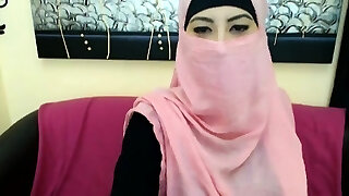 Arabic girl Muslim purple Hijab costume play xxl tits webcam recorded show March 20th