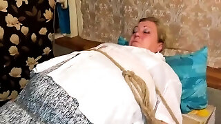 Plump tied dame Eleonora waits to be fucked rough on the bunk bed