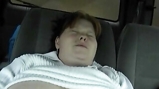 Hefty milk skinned BBW teen jacks her cooch in car