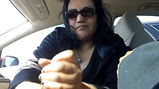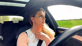 Horny Teacher in leggings jerks inwards her car while stuck in traffic