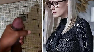 Husband's father jerks off dick when catches naked Amber Starr naked in the bathroom
