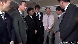 Busty Asian slut gets gang banged by super-naughty businessmen