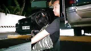 Cheating MILF Wife in leggings sucks her married neighbor's big monstrous penis