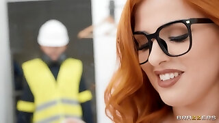 Redhead Cougar facialized by naughty big-dicked worker after steaming XXX