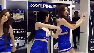 Lots of lusty well shaped nasty dolls dance under the water jet