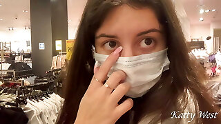Penetrating my pussy with a huge dildo in the public changing room of the mall