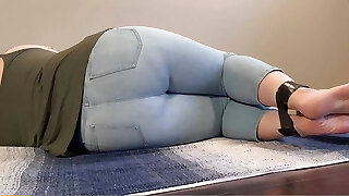 Dry humping ass grinding in latex leggings till he spunk in his underwear, back view