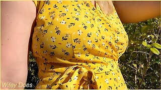 Wife heads out in a cute summer sundress braless and looks amazing with her blonde hair.