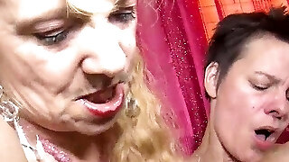 Two senior German whores willingly demonstrate themselves to face a ruthless threesome at Simone's house with a cock available
