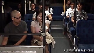 Two Dudes Fucking a Busty Chinese Girl's Big Boobs in the Public Bus