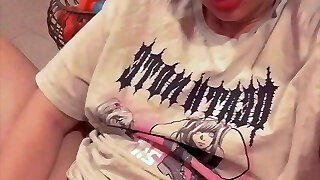 Babe in Humid T-shirt Hard Fuck in Doggie-style - Cum on Pussy