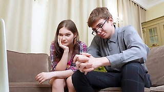 Fit Buxom Teen Caught Her Step-brother-in-law Wanking On Her & Let Him Enjoy Her Taut bald Pussy In Utter
