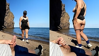 The stranger shocked the exhibitionist on the sea beach - XSanyAny