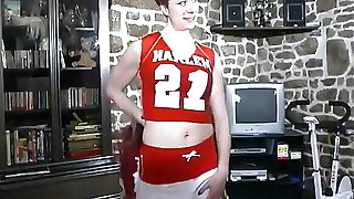 Big boobed sporty platinum-blonde cheerleader gets her bootie nailed with cumshot on stomac