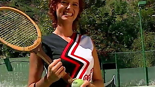 Sexy slut on a tennis court loves to have her asshole filled up with massive weenie