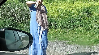 I take out my man meat on a motorway rest area, this Muslim damsel is shocked !!!