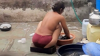 While the Desi stepmom washes hooter-sling & panties, stepmom took off the sonny's pants and Naked him, Then asks him to pound her - Spunk