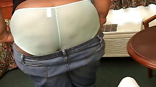Fat horny bitch likes to ride on cock like a cowgirl revealing her huge ass with a plug