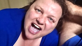 Big tits cougar deepthroat and cum in mouth