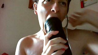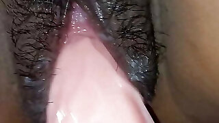 Huge Dildo Inserted in Black Tight Asian Beaver
