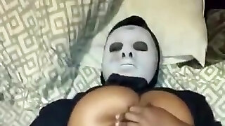 Busty German chick wearing a red mask gets her asshole hammered by a hard rod