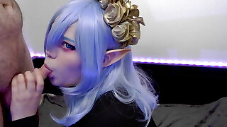 My stepmom deepthroats my cock and jerks my cock before getting creampie packed , view from below
