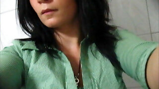 pervy stepmother shows insecure stepson how she urinates from her hairy pussy