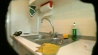 Gigantic and ugly matured wife switches her clothes in kitchen on spy cam1