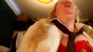 Ugly fat and nerdy blonde mature slut sucks strong dick and gets banged